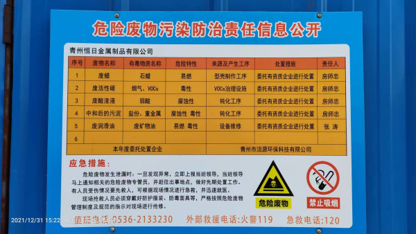 2021年危險廢物污染環(huán)境防治信息公開
