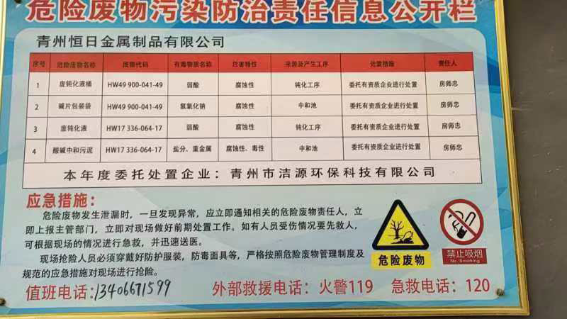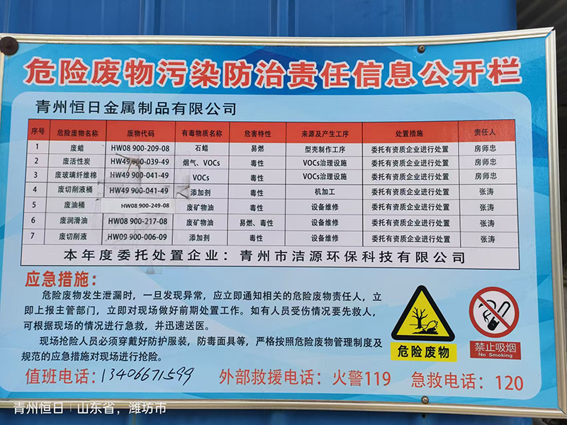 2024年青州恒日金屬制品有限公司危險(xiǎn)廢物污染環(huán)境防治信息公示